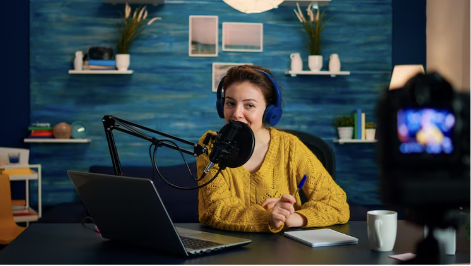 If you’re recording video as well, you need to make sure to change the setup of your studio to allow for an aesthetic view. You don’t necessarily need to make a full stage for yourself, but setting up a desk with minimum clutter and themed decor can take you a long way.